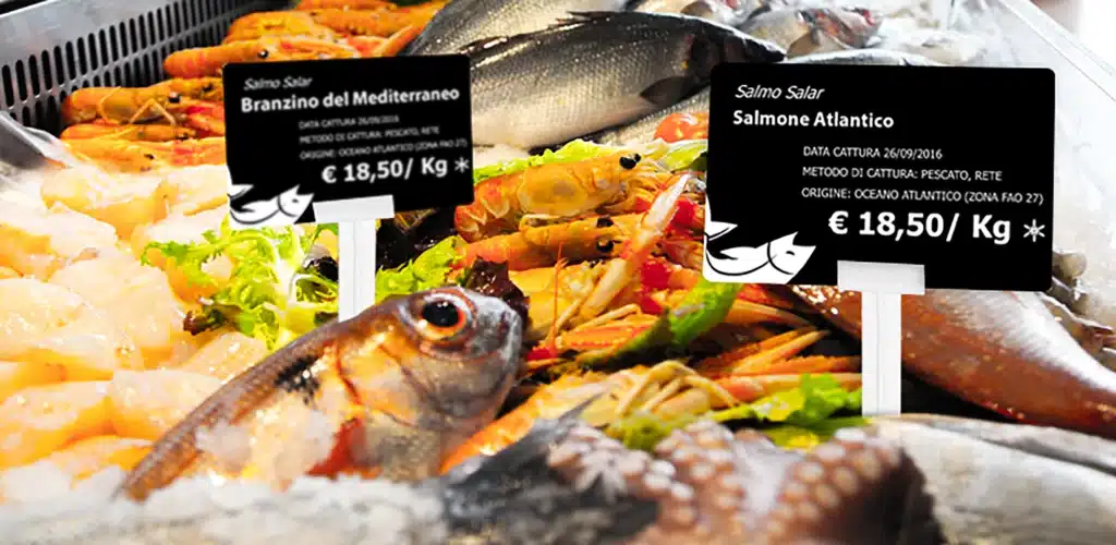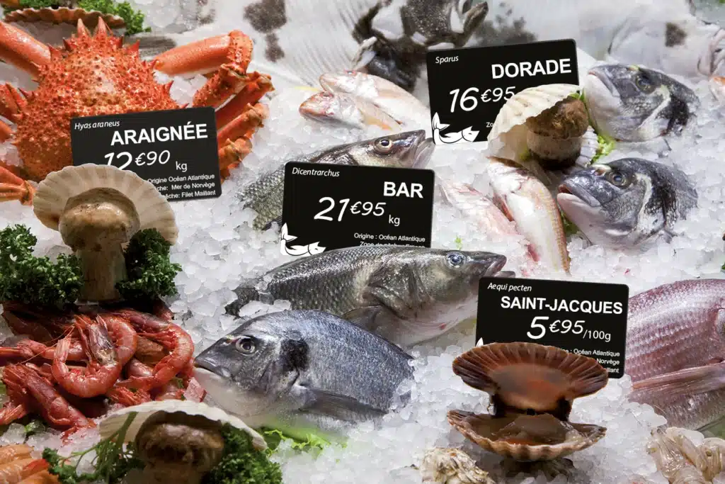 Valorisez vos produits en poissonnerie avec des étiquettes de prix claires, durables et professionnelles. Edikio, la solution simple et élégante.