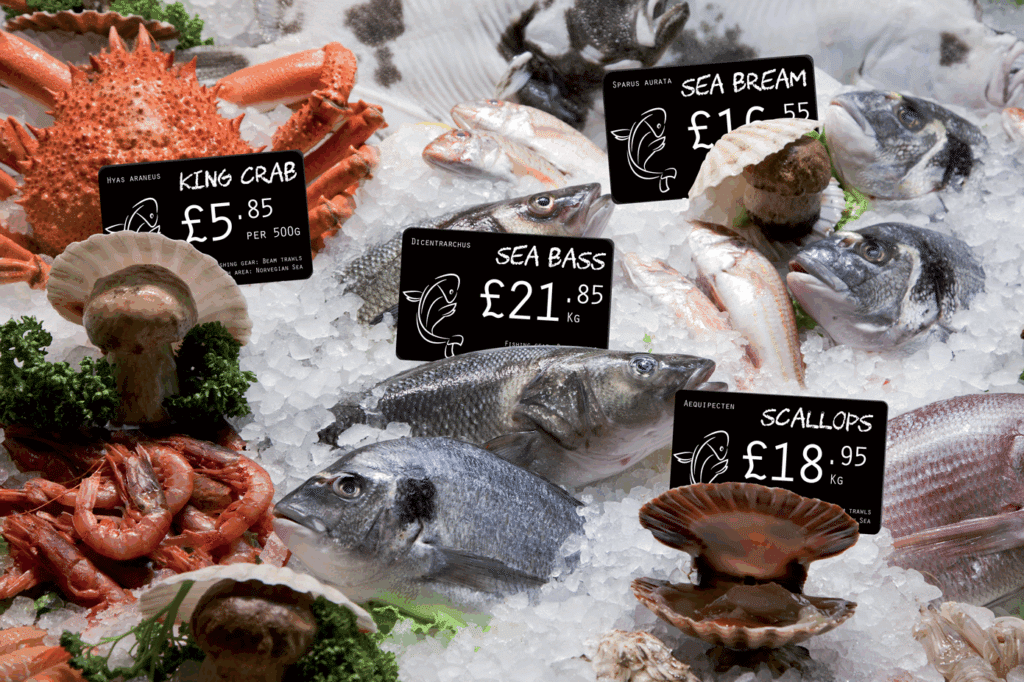 Vous pouvez également essayer de souligner que le saumon est « Riche en oméga-3 » et « Excellent avec des légumes rôtis ». Cela peut être un argument supplémentaire pour le client qui se dira : « Et si je faisais un saumon grillé ce soir ? » En mettant en évidence l’attrait d’un produit et en exploitant le point de vue du client lors de la création de vos étiquettes de prix et de vos PLV, vous pouvez augmenter considérablement vos chances de vente.