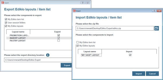 Vous pouvez exporter la liste d’articles ou les modèles d’étiquettes créés sur le logiciel Edikio pour les utiliser sur d’autres ordinateurs également équipés d’Edikio.
