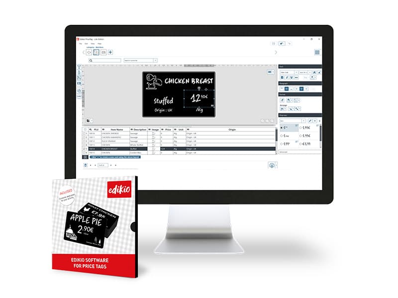 Inclus dans la solution tout-en-un Edikio Price Tag, le logiciel de création d’étiquettes Edikio Price Tag a été conçu pour simplifier le quotidien des commerçants et leur faire gagner du temps.