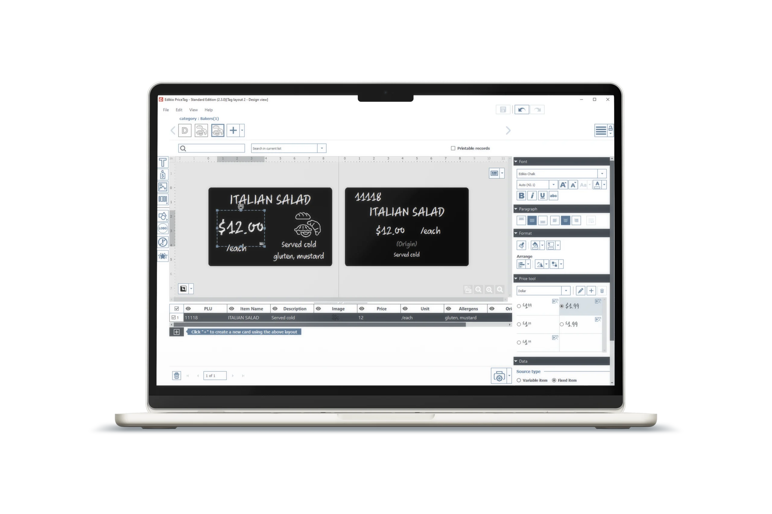 Grâce à la solution Edikio Duplex Price Tag, vous bénéficiez des fonctionnalités avancées du logiciel Edikio Price Tag « Edition Pro » compatible avec Windows® et macOS.