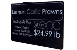 Nous sommes très satisfaits de cette solution. Les cartes sont résistantes, ont une apparence professionnelle et offrent suffisamment d'espace pour y afficher toutes sortes d'informations nutritionnelles. La formation était minimale, car nous pouvons