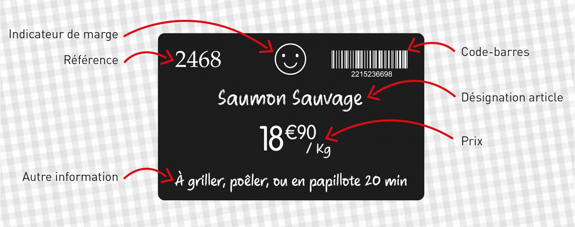 Il arrive fréquemment que les clients aient un doute sur la façon de préparer un produit frais et que cela les rende hésitants quant à leur achat. En affichant, au verso des étiquettes, des recommandations de préparation ou de cuisson des produits, le personnel de vente est en mesure de rassurer les clients et de lever toute objection à leur achat.